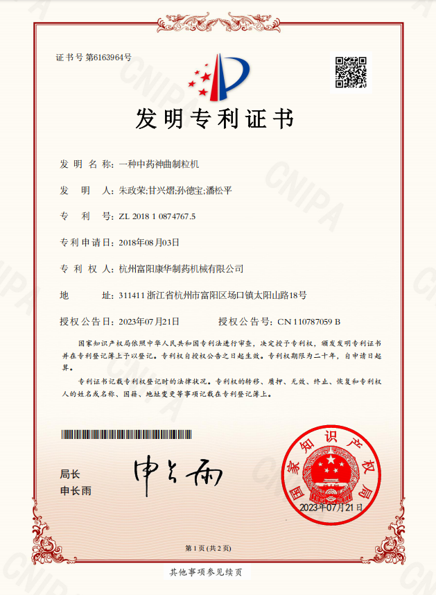 杭州富陽康華制藥機(jī)械有限公司(初創(chuàng)于2001年, 2004年后更名為:杭州富陽康華機(jī)械設(shè)備廠),是集產(chǎn)科研一體化的中藥材前處理及飲片加工設(shè)備制造企業(yè)。公司秉承以產(chǎn)品質(zhì)量為基礎(chǔ)、客戶服務(wù)為向?qū)?、科研?chuàng)新為后勁的宗旨,在企業(yè)高速發(fā)展的同時,著力打造新產(chǎn)品研發(fā)中心,以開發(fā)現(xiàn)代、新穎設(shè)備為重任,確保產(chǎn)品立于行業(yè)先進(jìn)行列,企業(yè)已擁有70余項專利...
